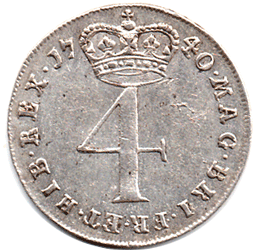 1740 Maundy 4d - Obv. The Maundy 3d head die has been by mistake resulting in small head & legend